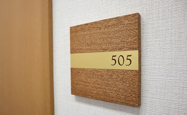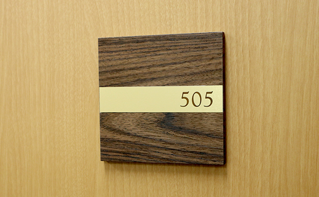 MDF突板貼り+金属プレート+部屋文字加工